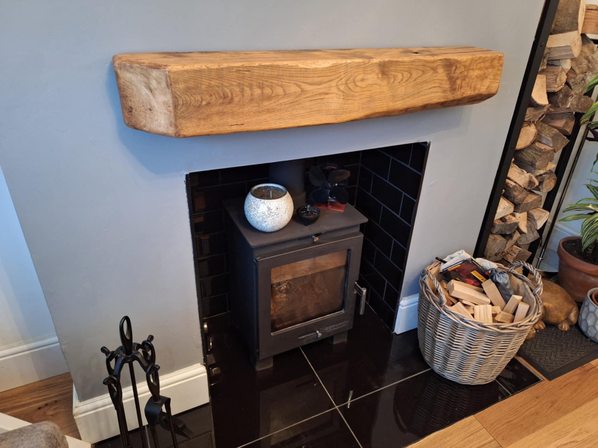 🌿 Elmhurst Handcrafted Antique Pine Finish Oak Beam Mantlepiece